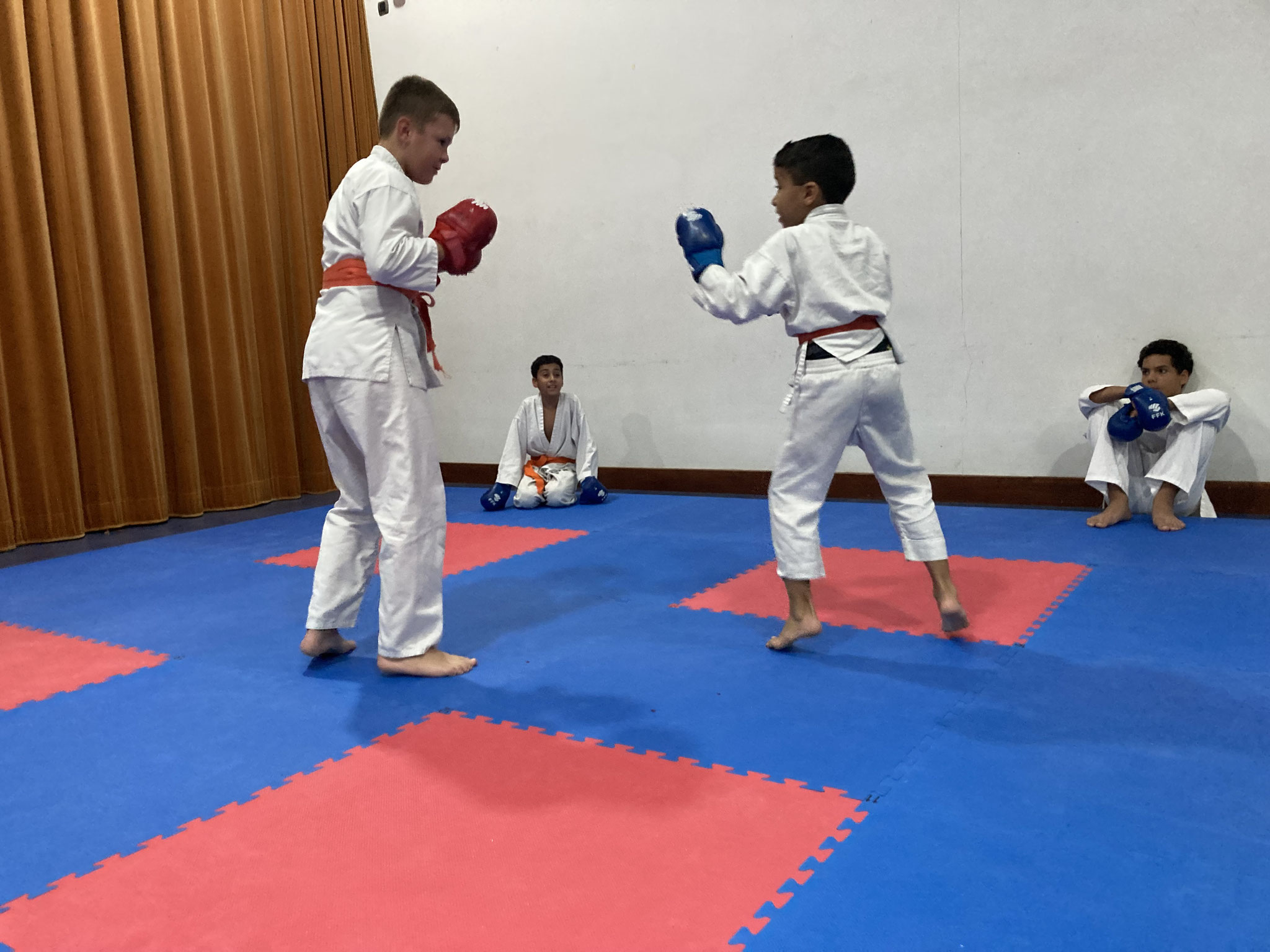 Quasiment tous les enfants de la saison dernière étaient de retour. Nous avons reçu aussi quelques nouveaux venus tester le karaté.